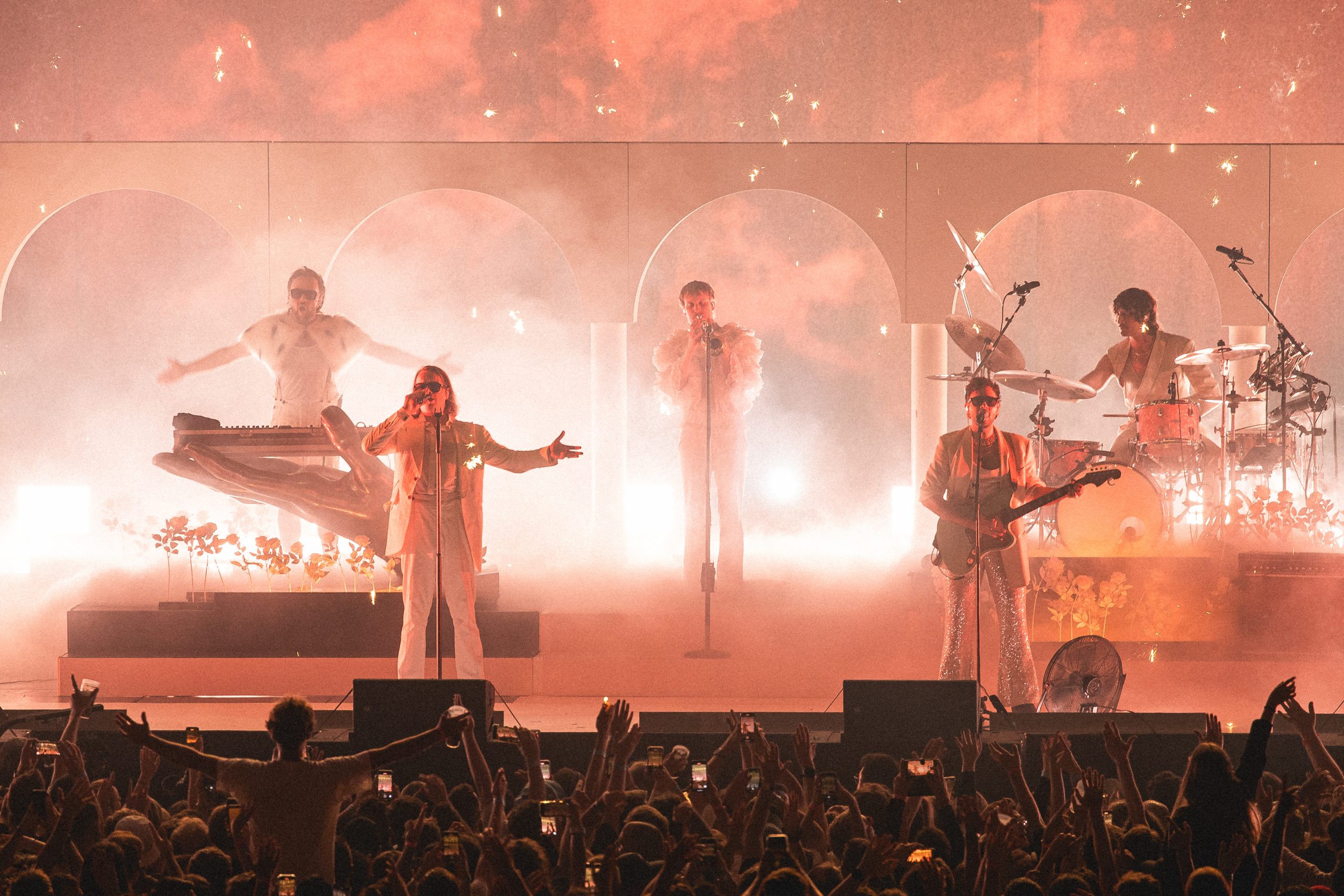 Auf der Bühne verband die Band ihre ikonische Ästhetik mit einem mitreißenden Live-Erlebnis, das das Publikum quer durch den deutschsprachigen Raum feierte.